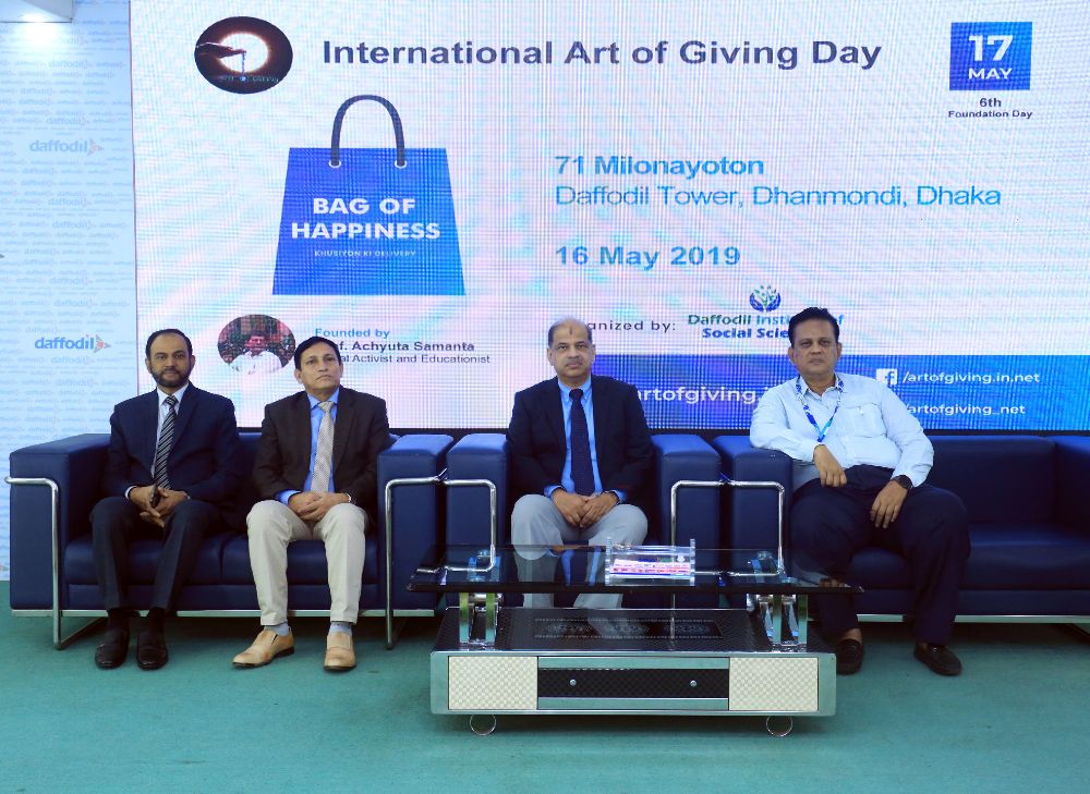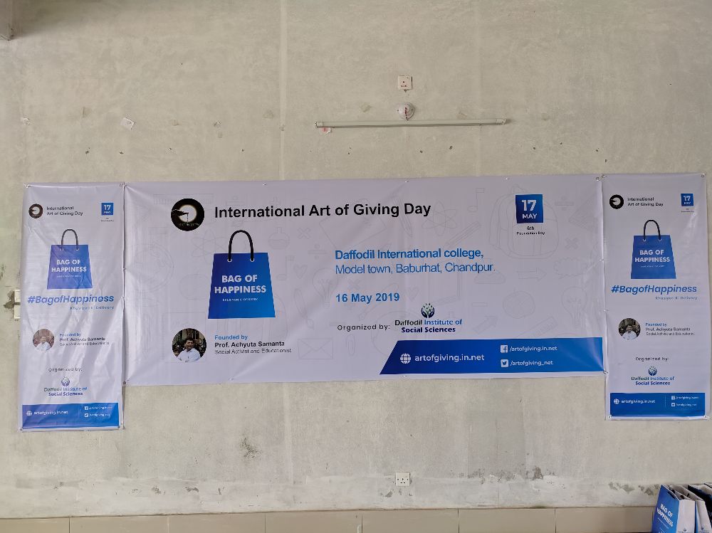 Events 6th Art of Giving (AOG) Foundation Day Celebration,2019 Venue Triple star special school: (Partial view). Venue DIU Permanent Campus: (Partial view). Venue Main Campus, Dhaka: (Partial view). Venue Chandpur, Baburhat, Daffodil school & college: (Partial view).